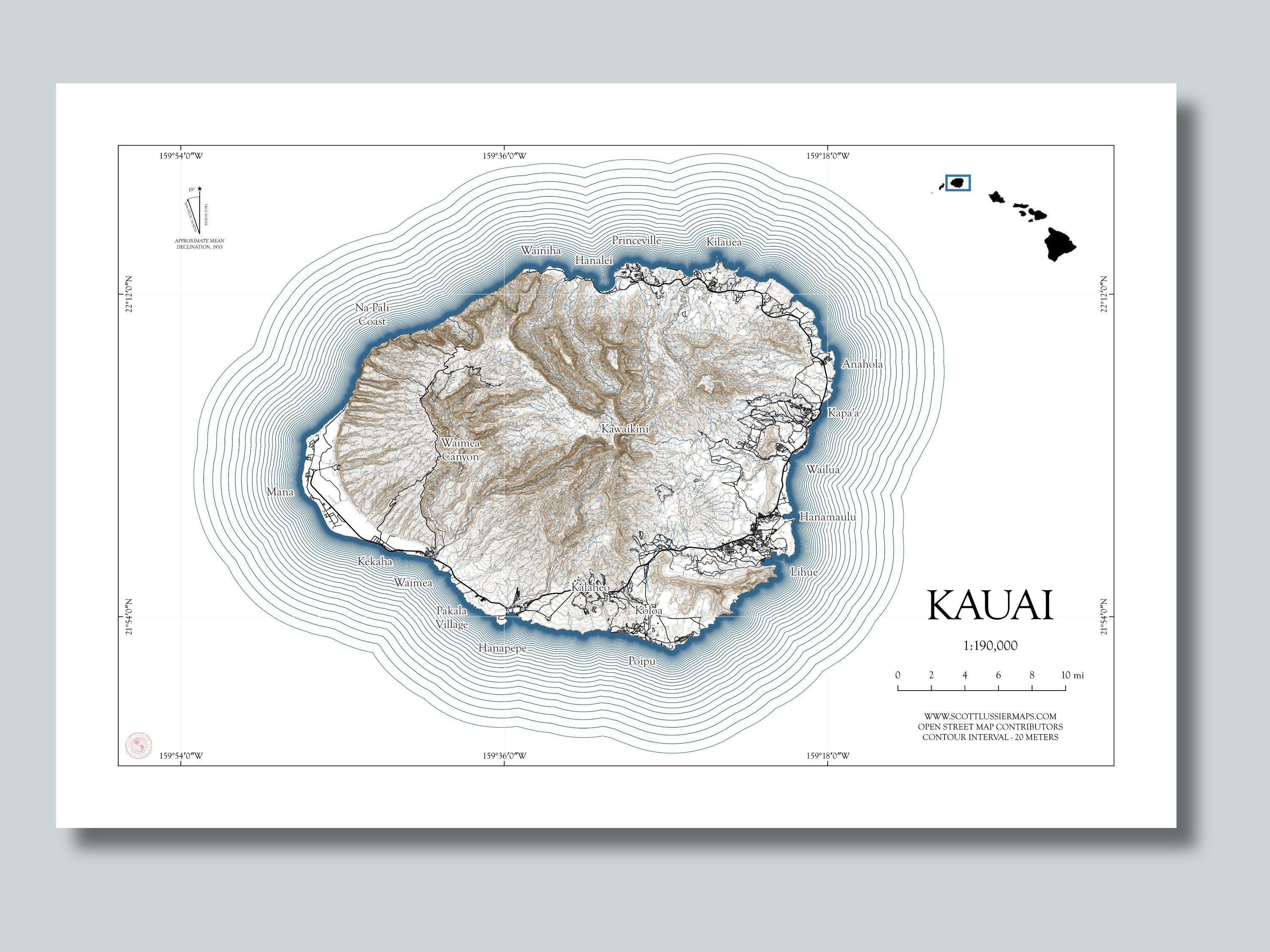 Kauai Map Print Poster Kauai Hawaii Island Wall Art Prints Hawaiian