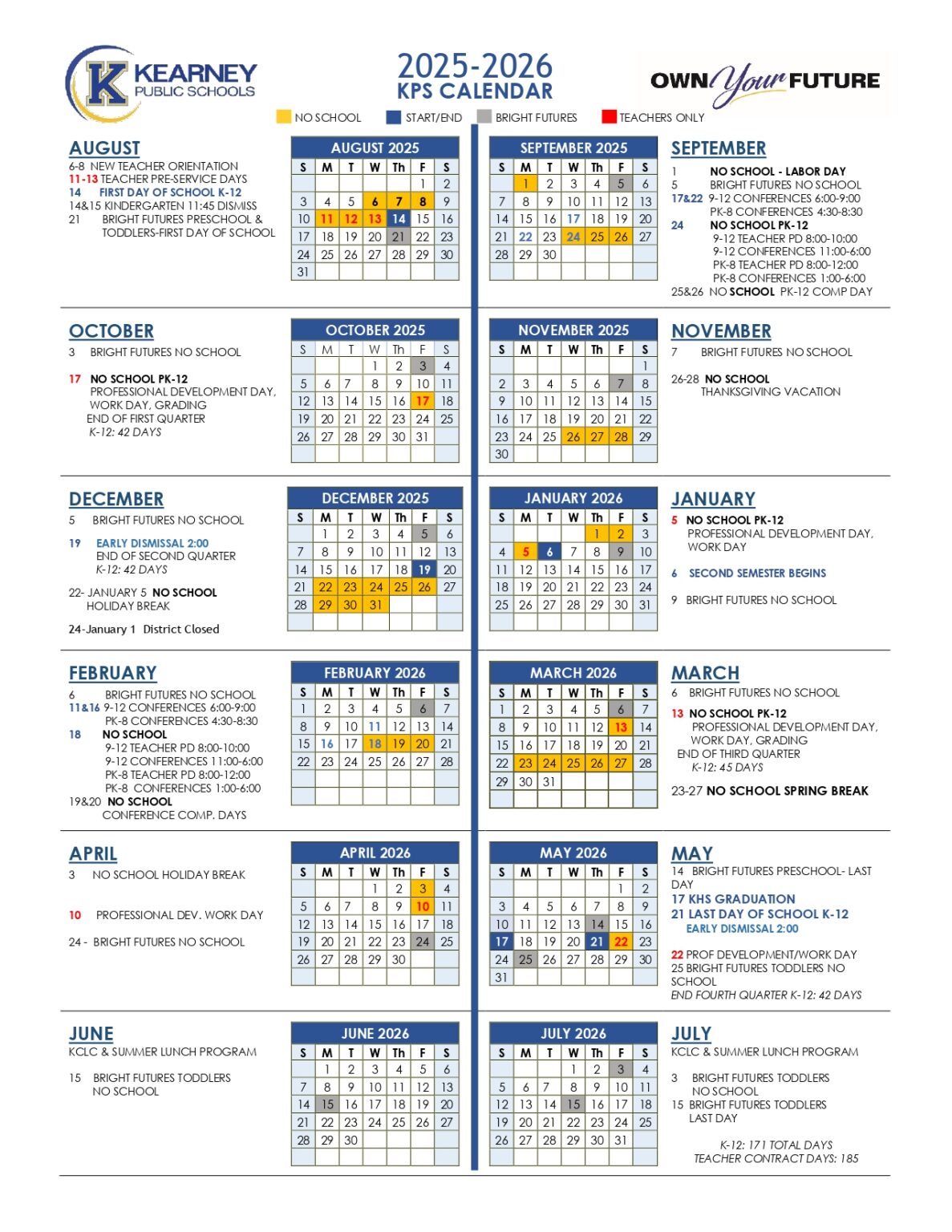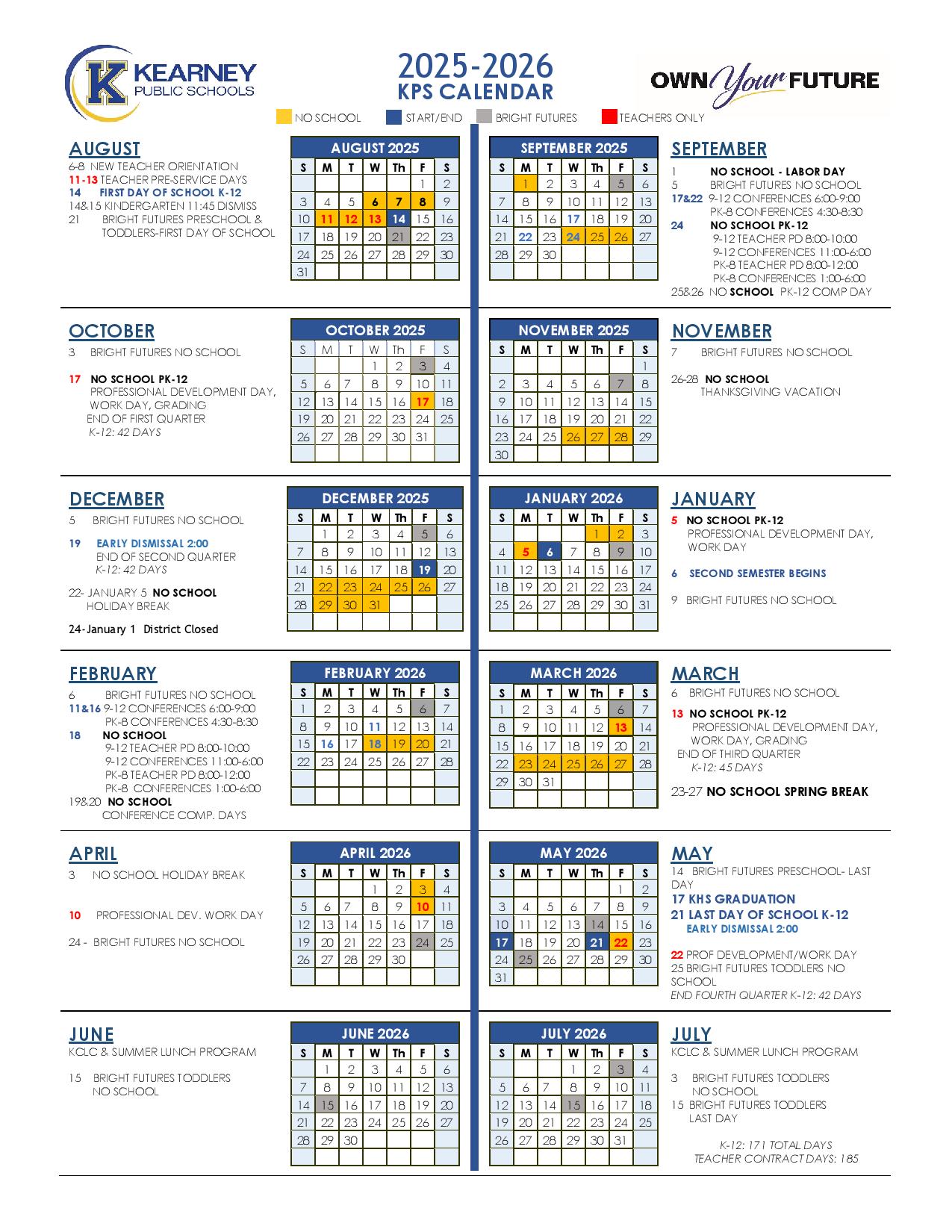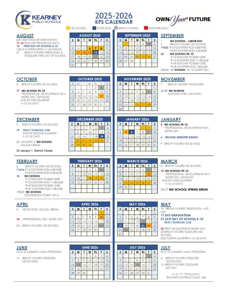 Kearney Public Schools Calendar 2025 2026 (Nebraska)