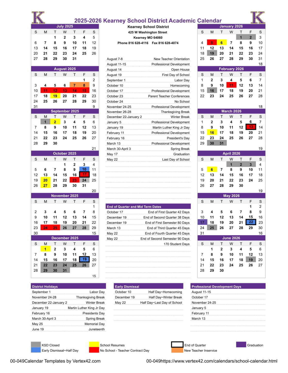 Kearney School District Calendar 25 26 Revised PDF EduCounty