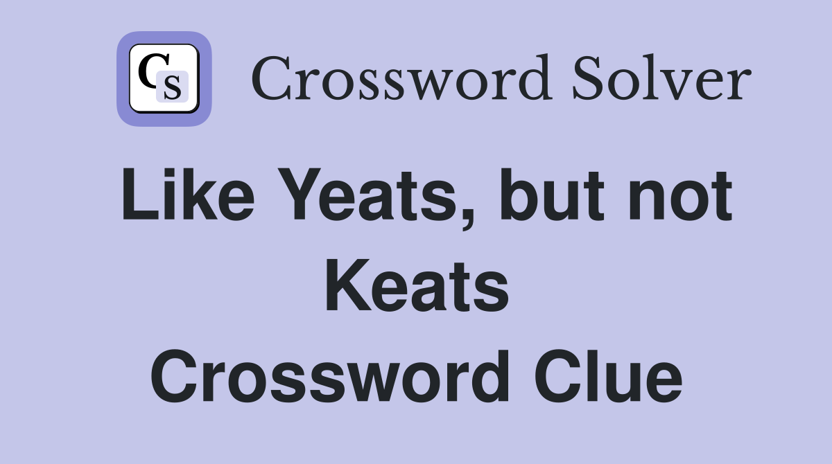 Like Yeats but not Keats Crossword Clue Answers Crossword Solver