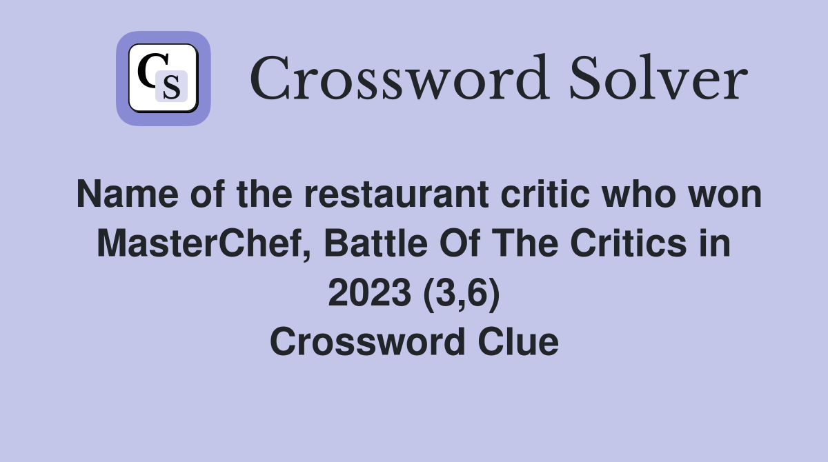 Name of the restaurant critic who won MasterChef Battle Of The Critics