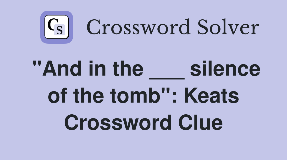 quot And in the silence of the tomb quot : Keats Crossword Clue Answers