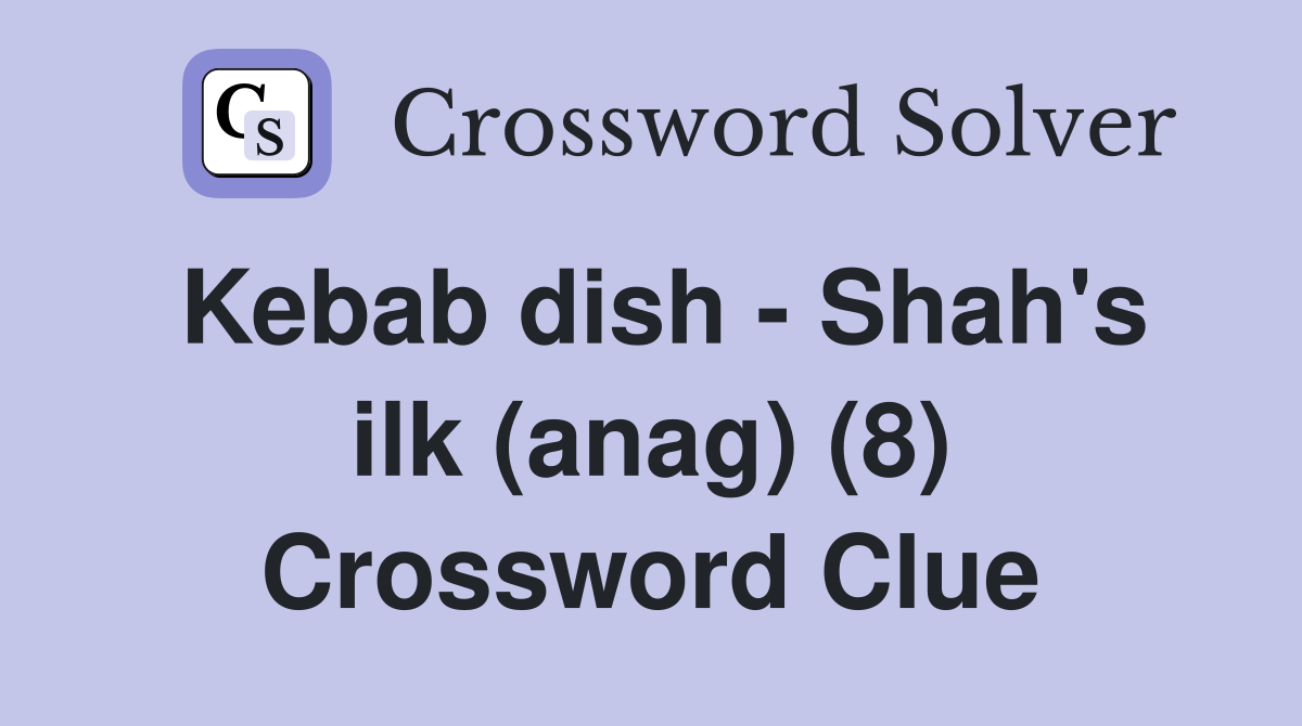 Kebab dish Shah #39 s ilk (anag) (8) Crossword Clue Answers Crossword