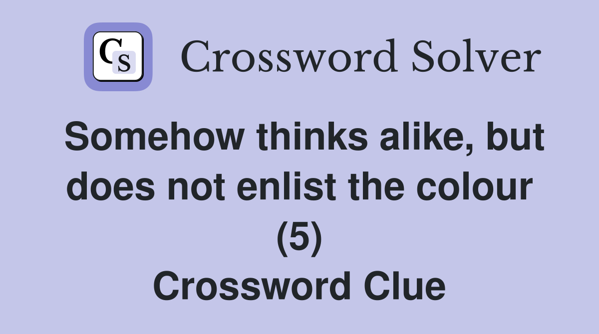 Somehow thinks alike but does not enlist the colour (5) Crossword