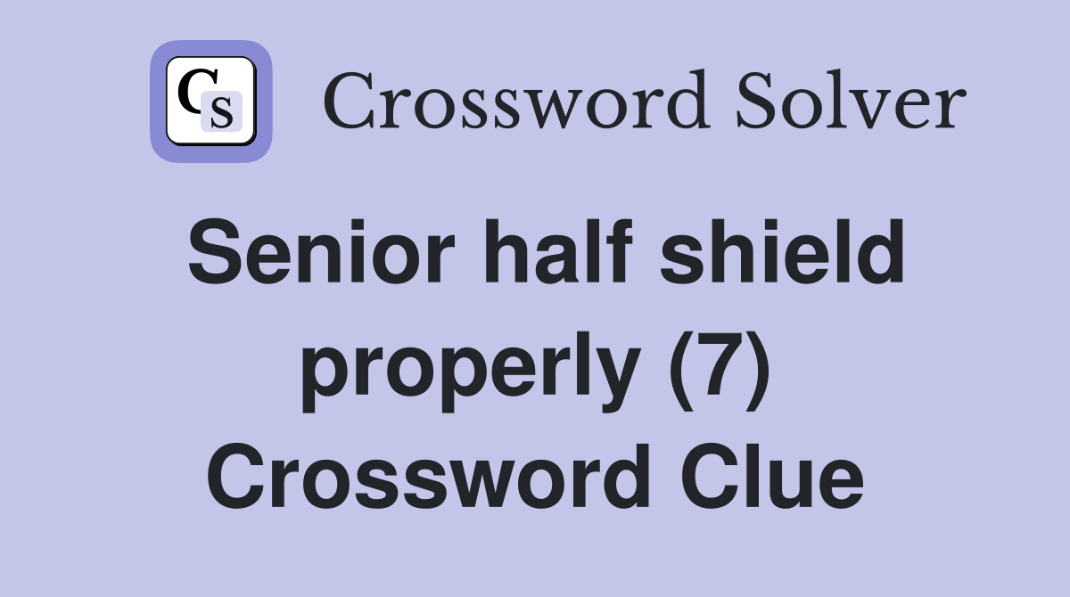 Senior half shield properly (7) Crossword Clue Answers Crossword Solver