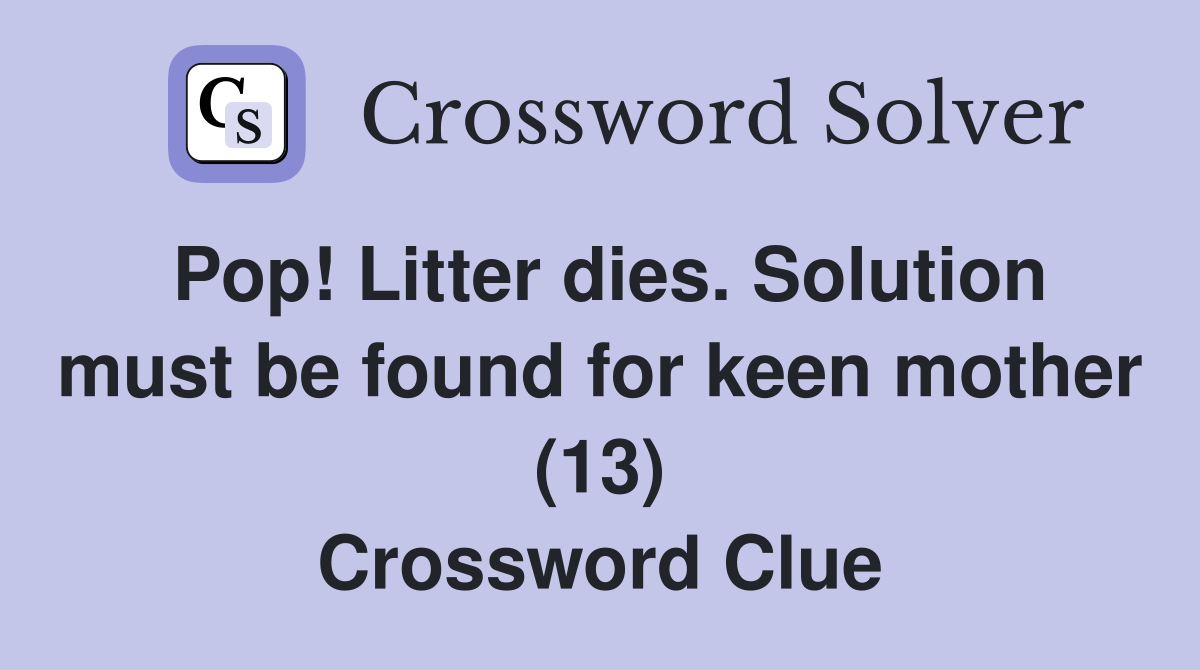Pop Litter dies Solution must be found for keen mother (13
