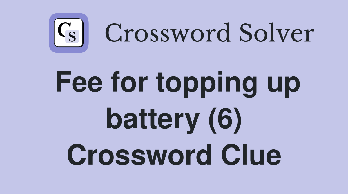 Fee for topping up battery (6) Crossword Clue Answers Crossword Solver