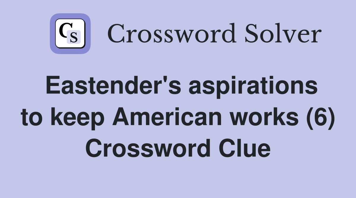 Eastender #39 s aspirations to keep American works (6) Crossword Clue