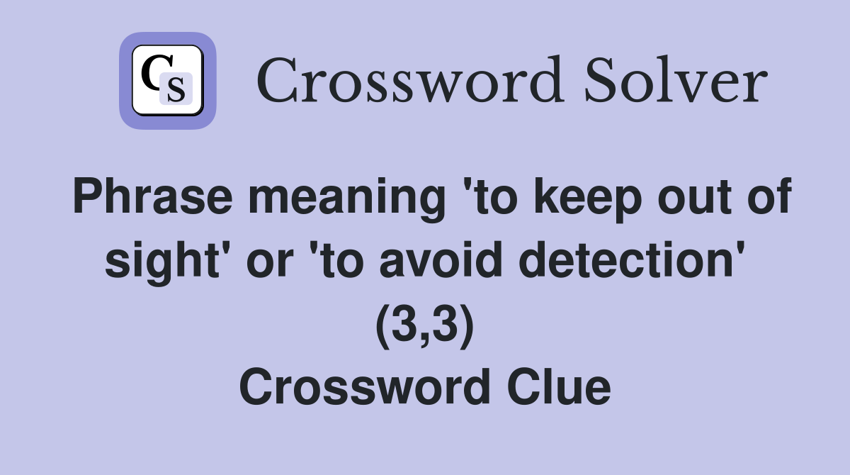 Phrase meaning to keep out of sight or to avoid detection (3 3