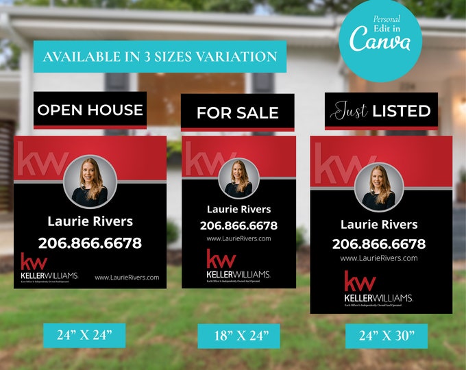 Keller Williams Yard Sign Template: Real Estate Design (canva Template