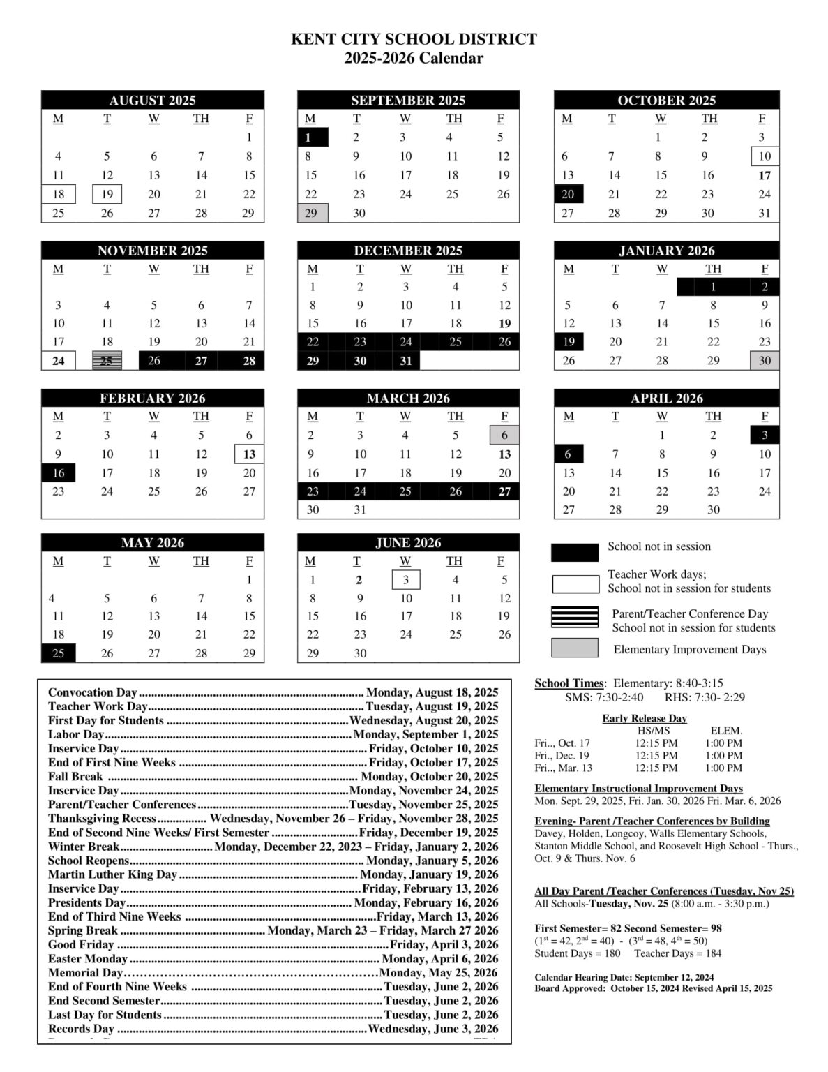 Kent City School District Calendar 25 26 Revised PDF EduCounty