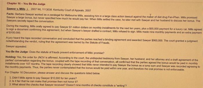 Chapter 16 You Be the Judge Sawyer V Mills #92 pm Chegg com