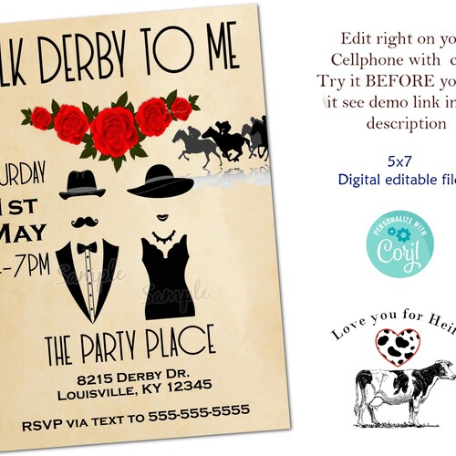 Kentucky Derby Party Invitation Editable Digital Invite Horse Race