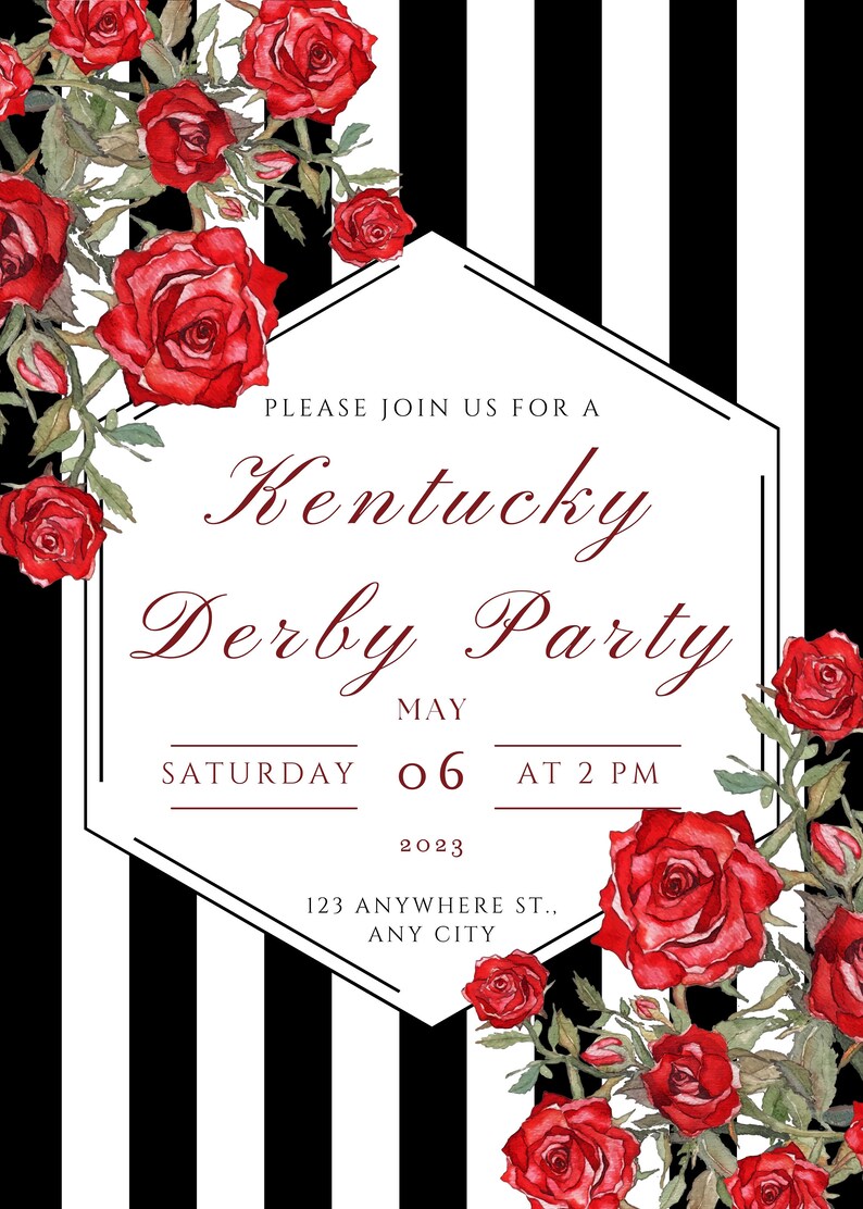 Kentucky Derby Invitation Editable Template Run for the Roses Derby