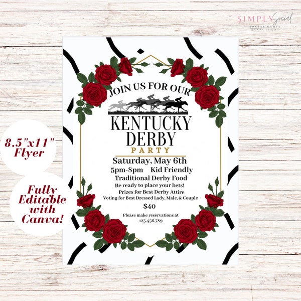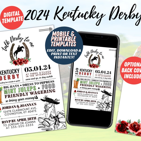 Kentucky Derby Party Digital Invitation Instant Download on Canva