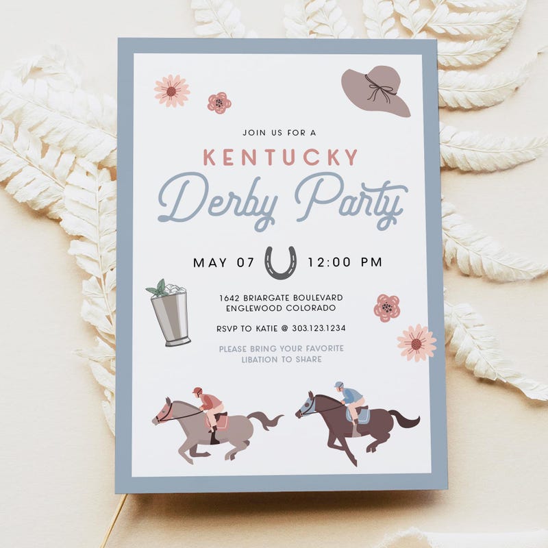 Kentucky Derby Party Invitation Personalized and Printable 5x7 Etsy