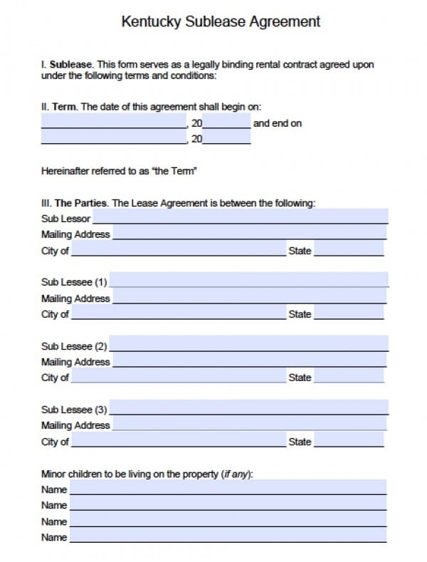Printable Kentucky Lease Agreement Printable Sight Words List