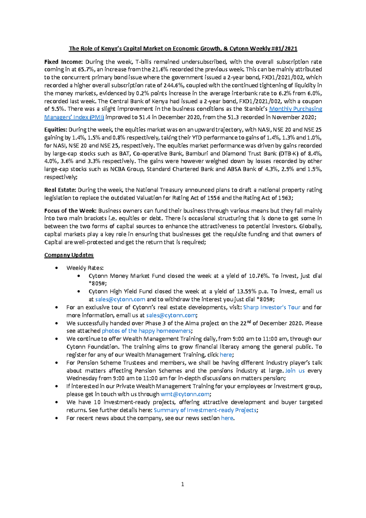 The role of kenyas capital market on economic growth cytonn weekly 01