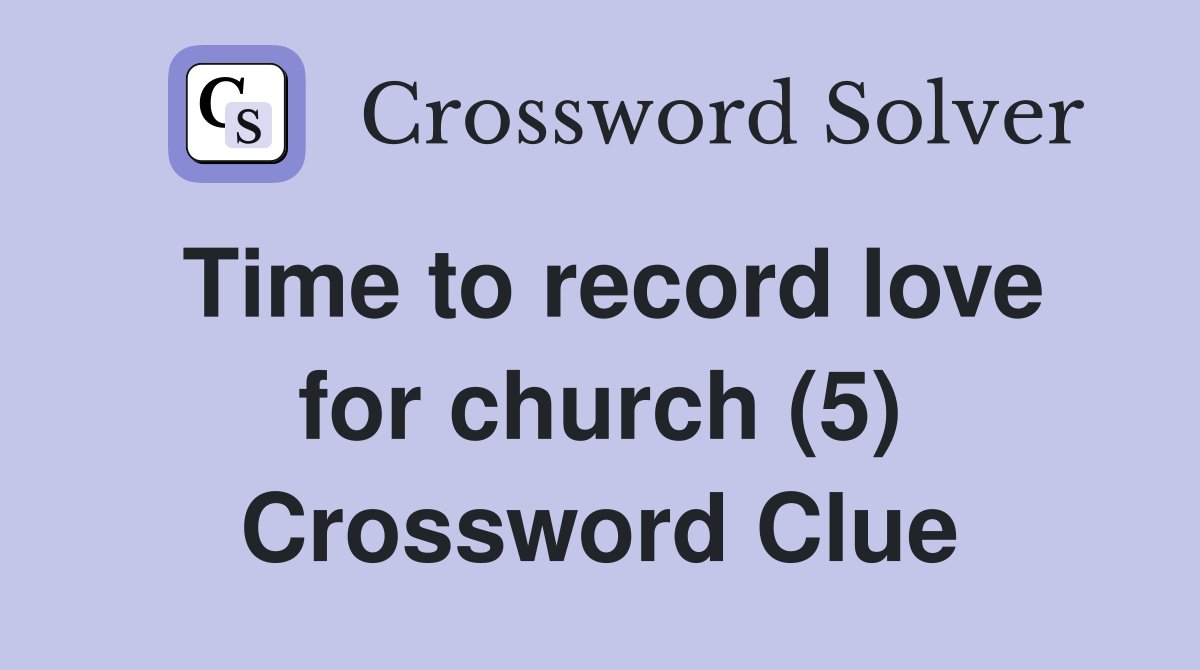 Time to record love for church (5) Crossword Clue Answers Crossword