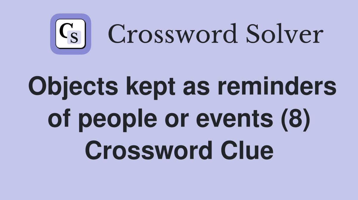 Objects kept as reminders of people or events (8) Crossword Clue