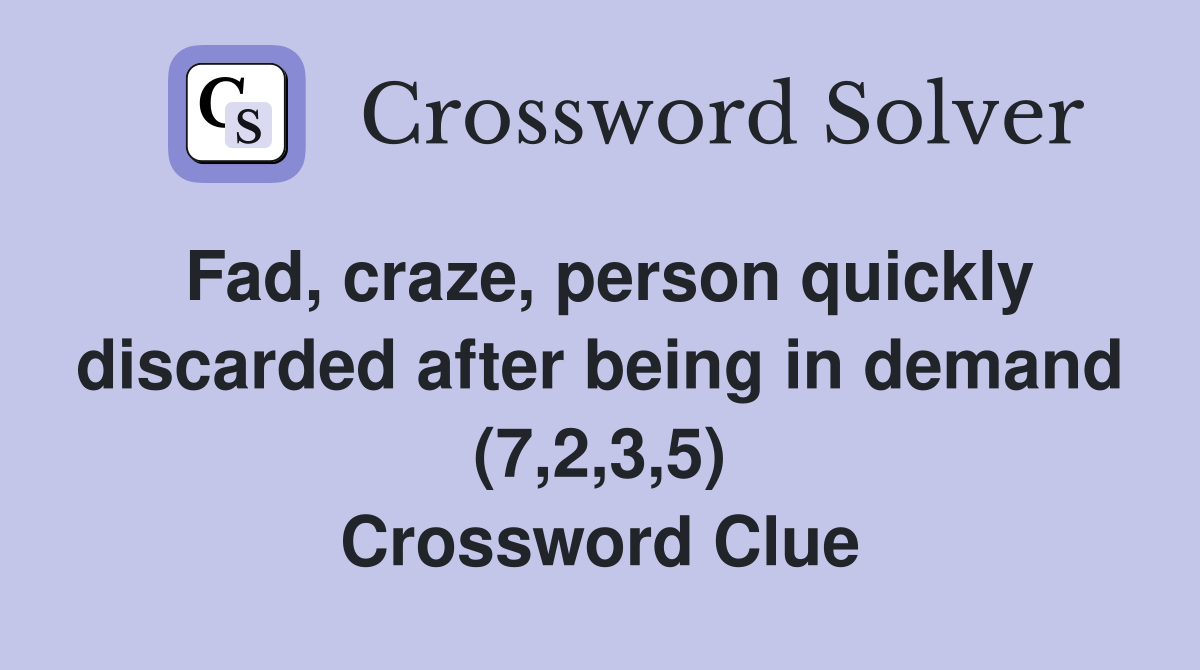 Fad craze person quickly discarded after being in demand (7 2 3 5