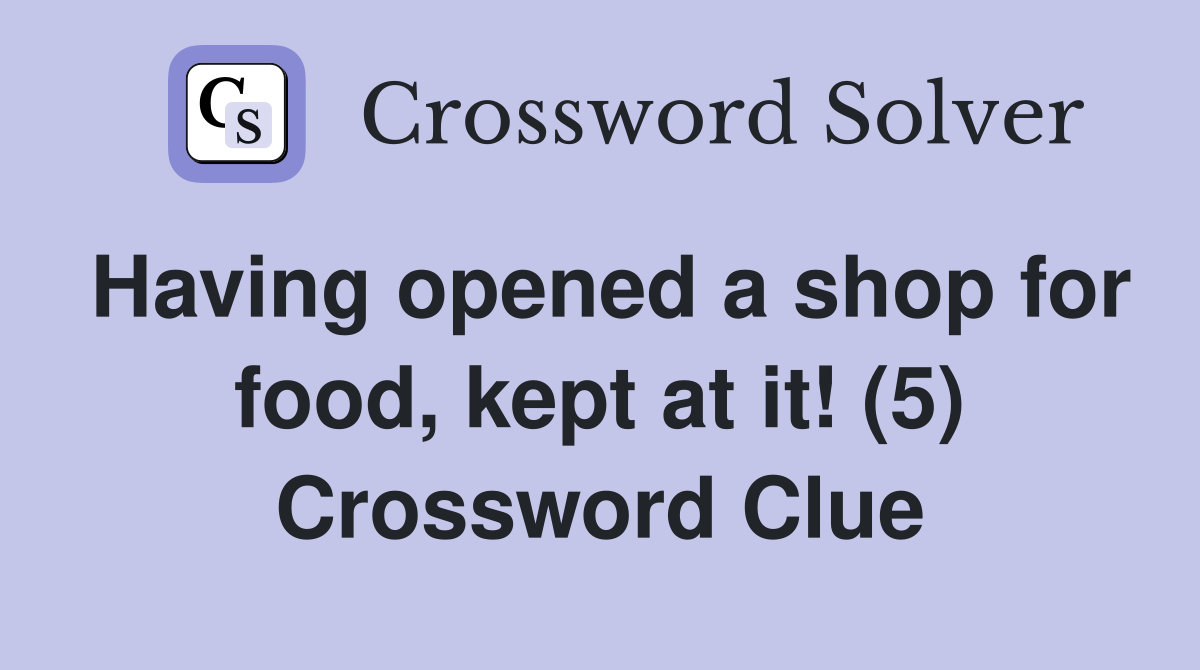 Having opened a shop for food kept at it (5) Crossword Clue Answers