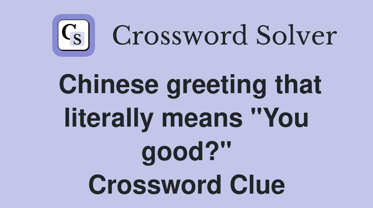 Chinese greeting that literally means quot You good? quot Crossword Clue