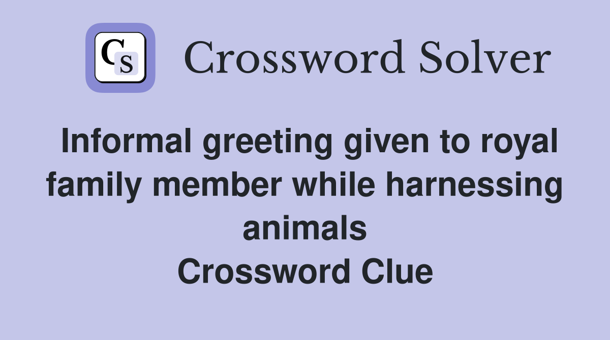 Informal greeting given to royal family member while harnessing animals