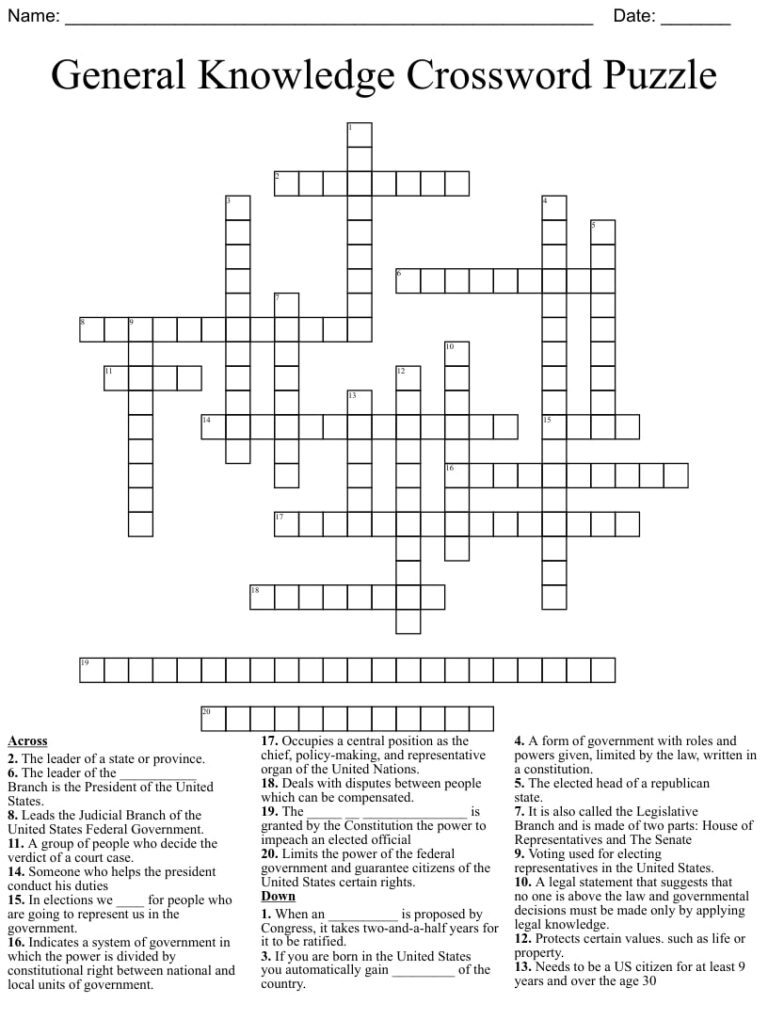 Crossword Puzzle Printable For Kids American Revolution Printable