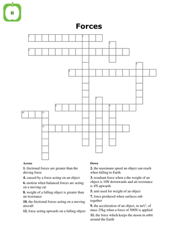 Physics: Forces and motion crossword by greenAPL Teaching Resources TES