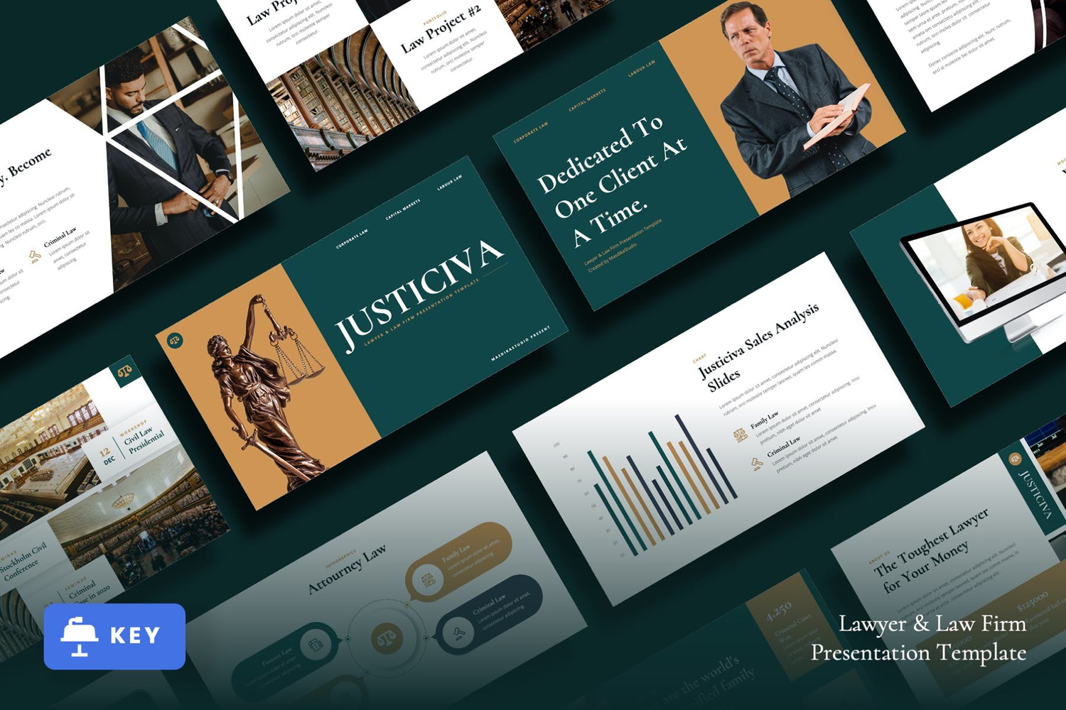 3079 律师事务所法律援助司法PPT Keynote模板 Justiciva Lawyer Law Firm Keynote
