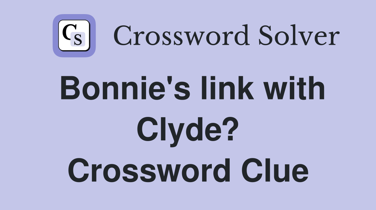 Bonnie #39 s link with Clyde? Crossword Clue Answers Crossword Solver
