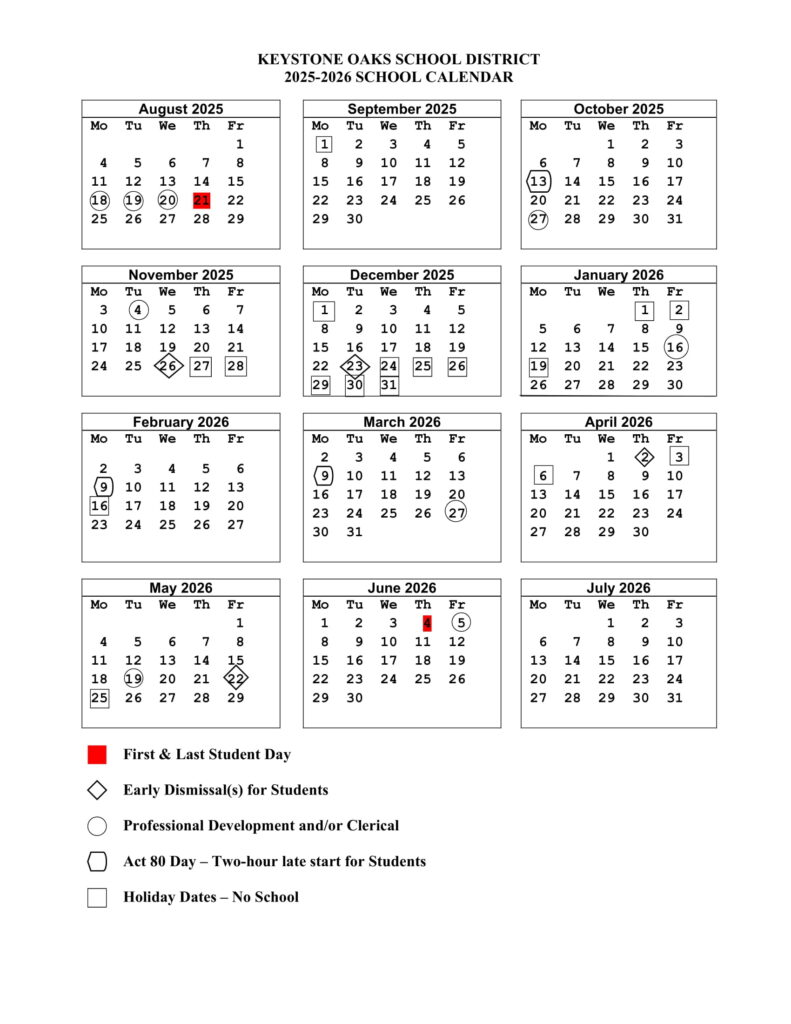 Keystone Oaks School District Calendar 25 26 PDF Revised EduCounty