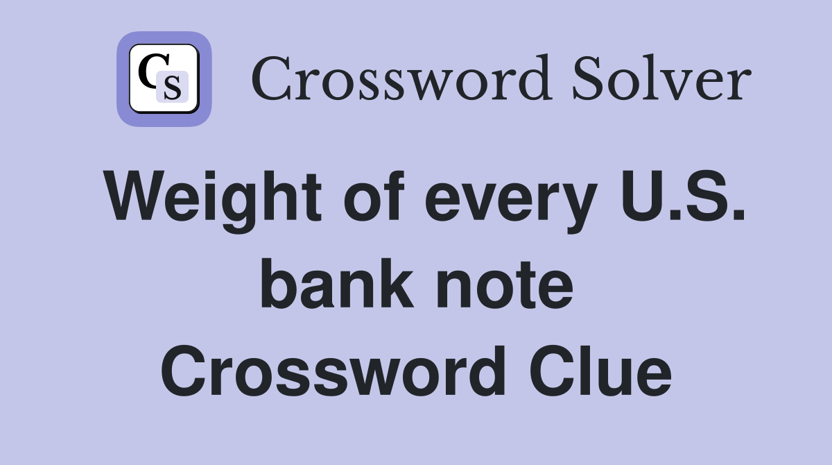Weight of every U S bank note Crossword Clue Answers Crossword Solver
