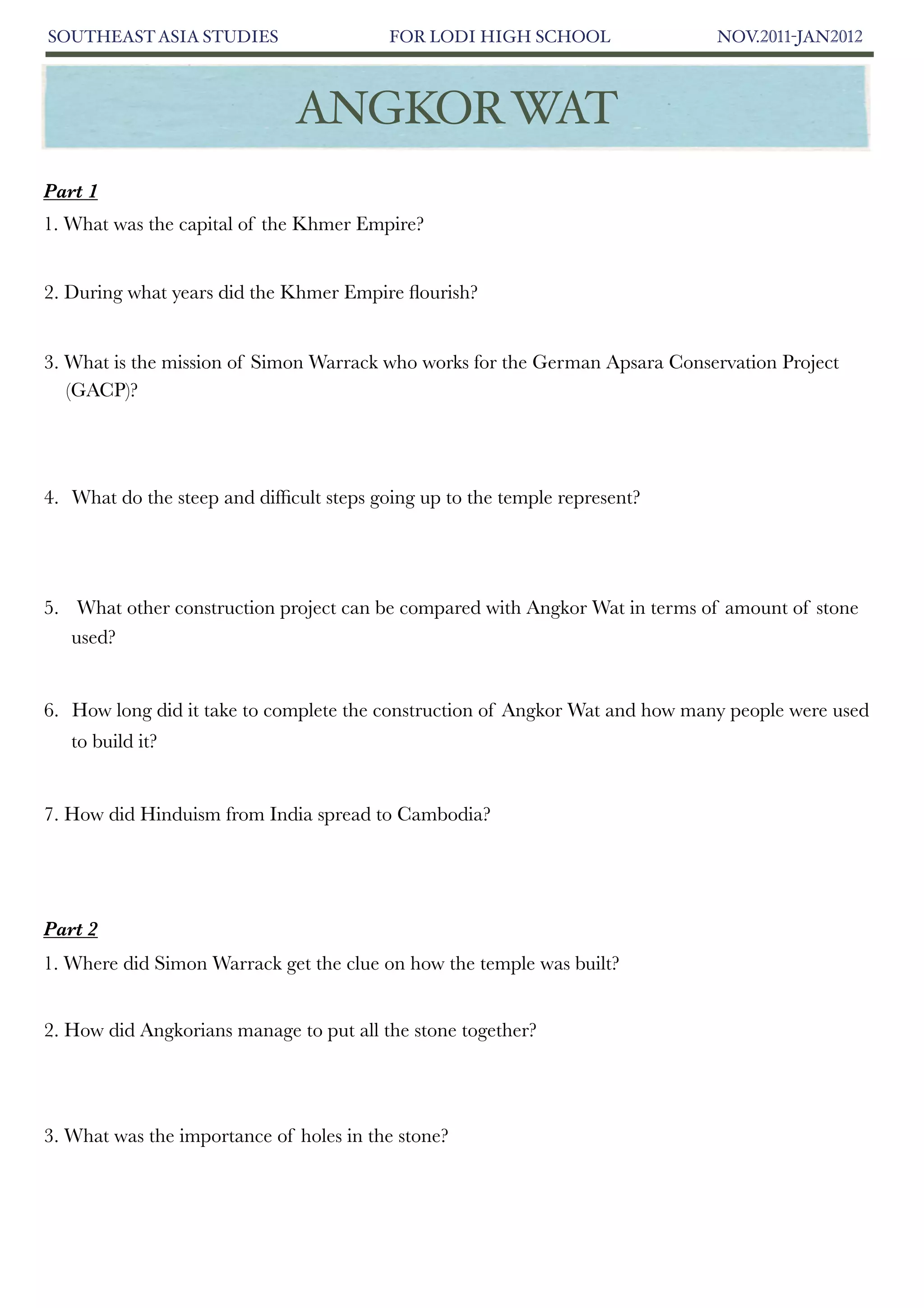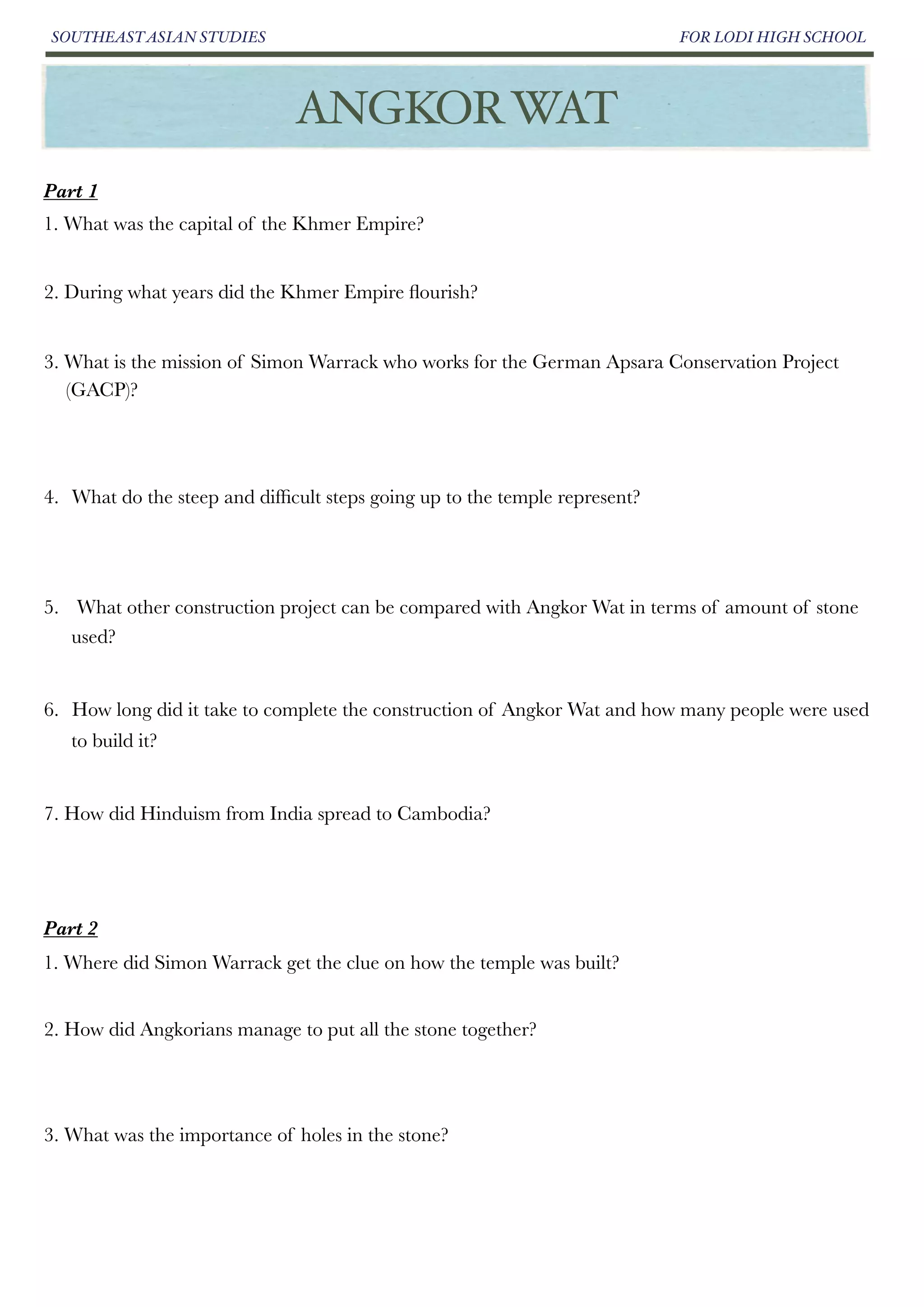 Study guide angkorwat questions PDF