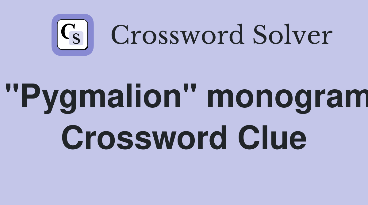 quot Pygmalion quot monogram Crossword Clue Answers Crossword Solver