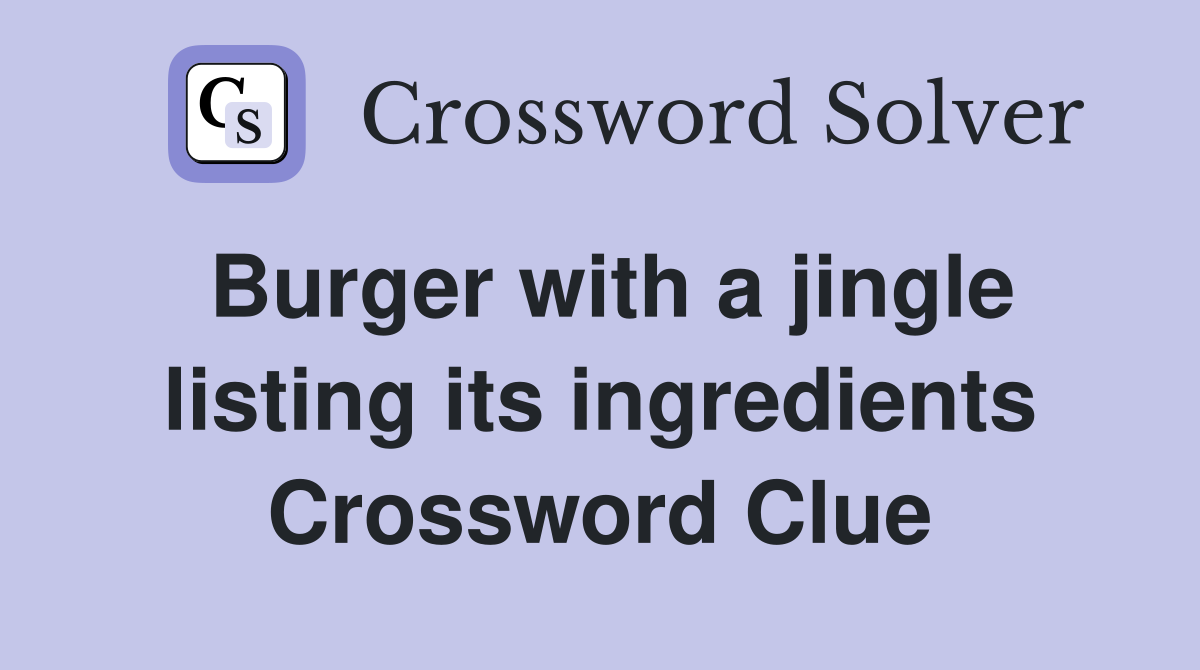 Burger with a jingle listing its ingredients Crossword Clue Answers