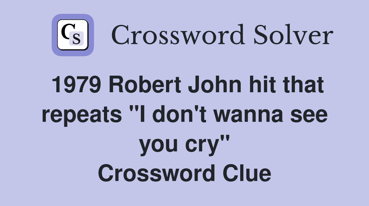 1979 Robert John hit that repeats quot I don #39 t wanna see you cry