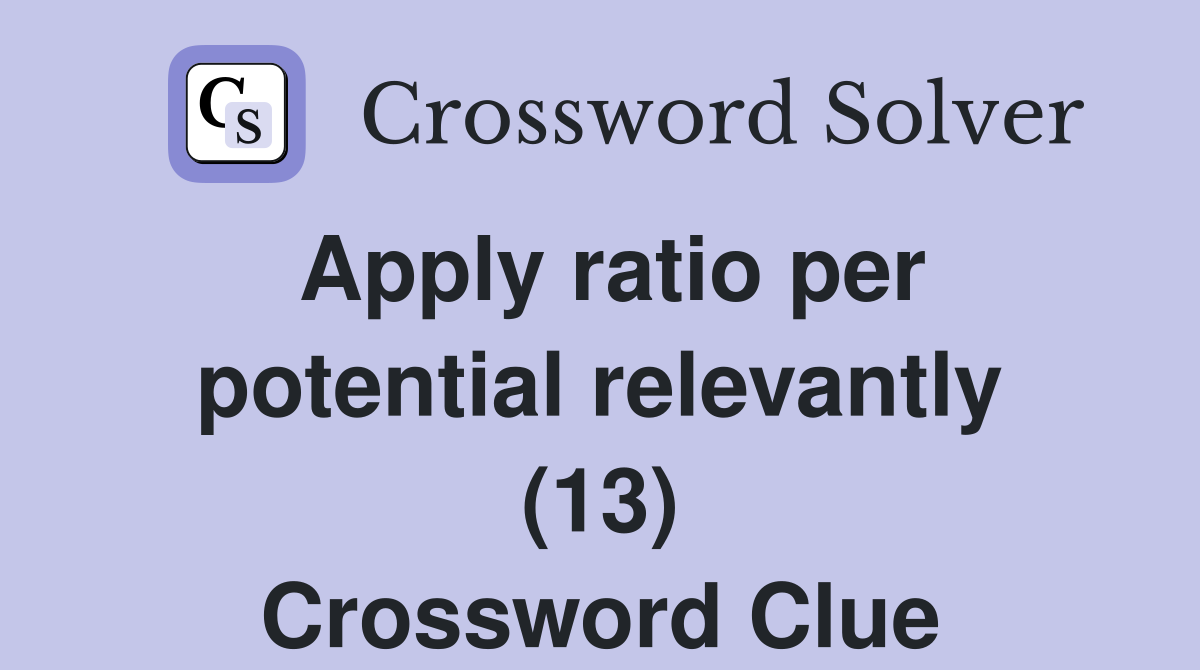 Apply ratio per potential relevantly (13) Crossword Clue Answers