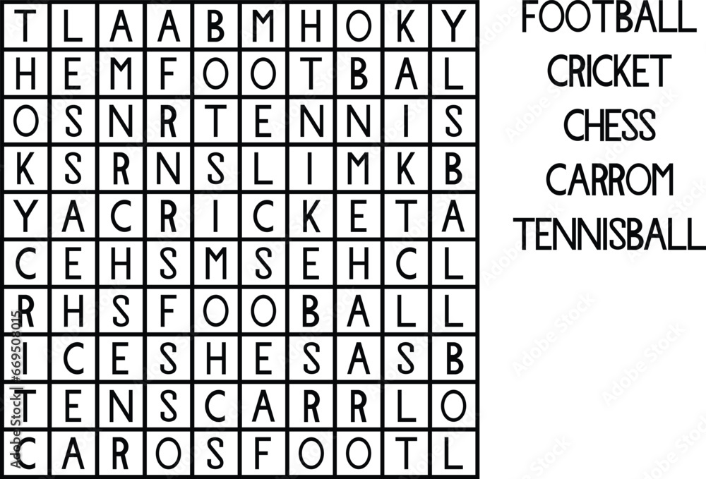 Crossword game for kids find the names of games puzzle game in Vector