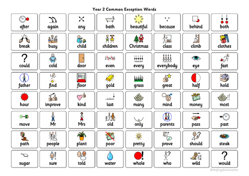 Year 2 Common Exception Word Mat Widgit Teaching Resources