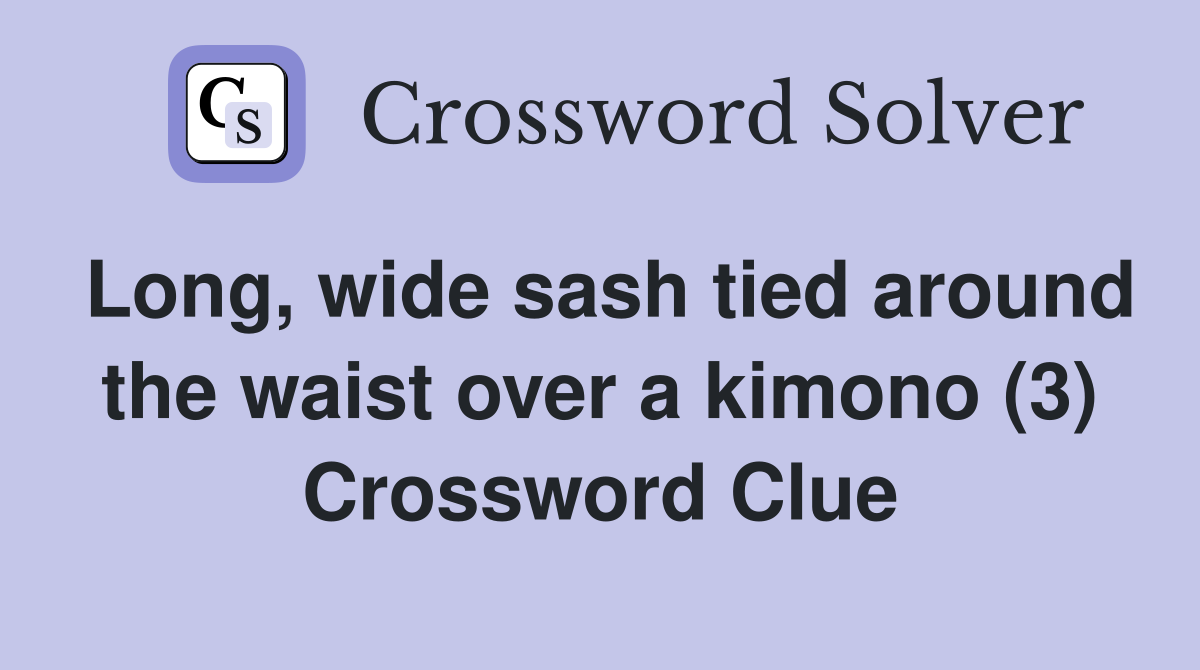 Sash for kimono (3) Crossword Clue Answers Crossword Solver