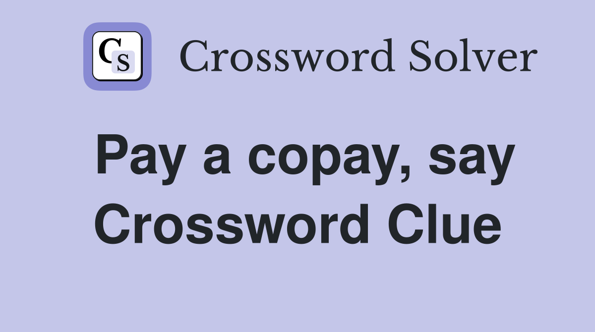 Pay a copay say Crossword Clue Answers Crossword Solver