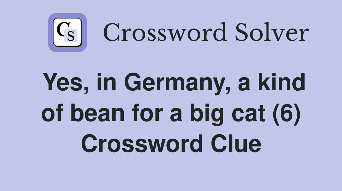 Yes in Germany a kind of bean for a big cat (6) Crossword Clue