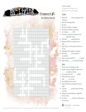 Fillable Online hi5living Crossword #4 Sun Safety Smarts ACroSS 3