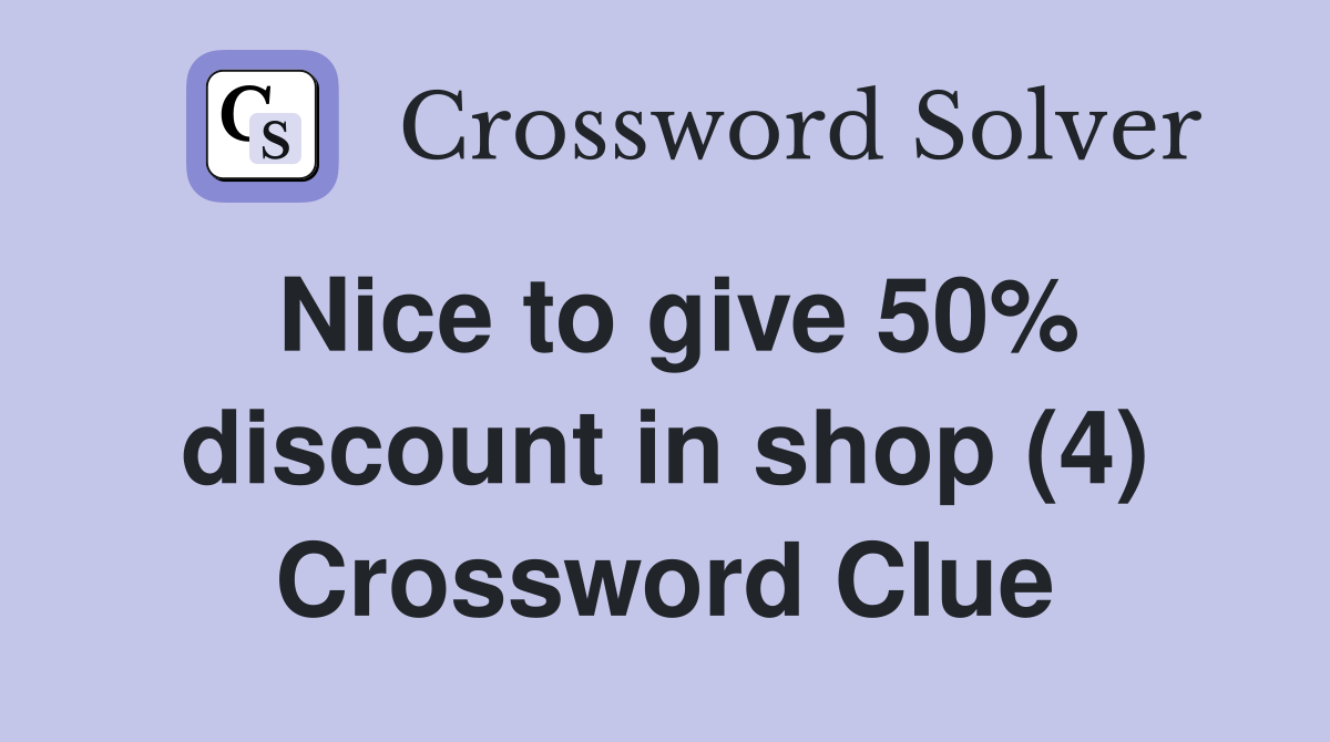 Nice to give 50% discount in shop (4) Crossword Clue Answers