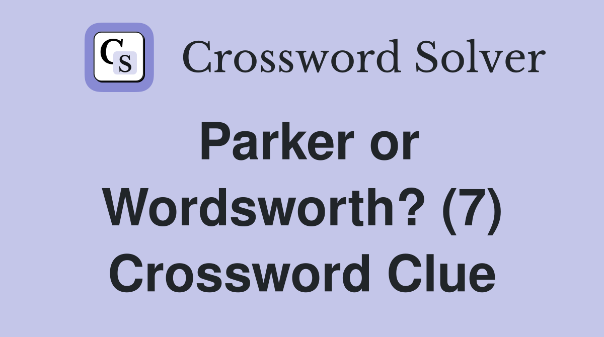 Parker or Wordsworth? (7) Crossword Clue Answers Crossword Solver