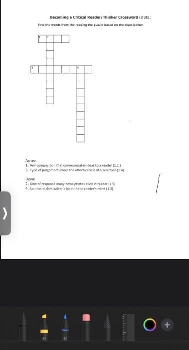 Becoming a Critical Reader/Thinker Crossword (8 pts ) Chegg com
