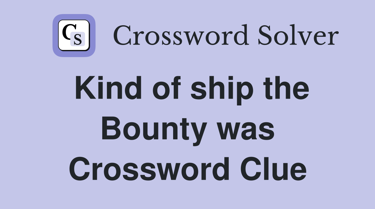 Kind of ship the Bounty was Crossword Clue Answers Crossword Solver