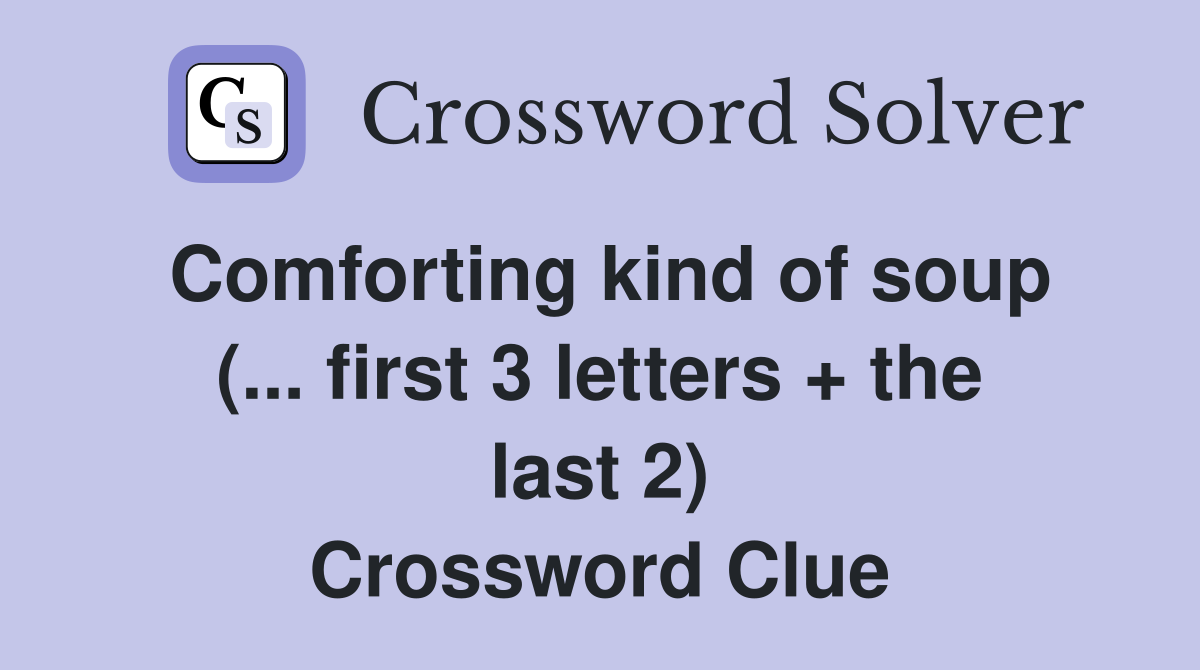 Comforting kind of soup ( first 3 letters the last 2) Crossword